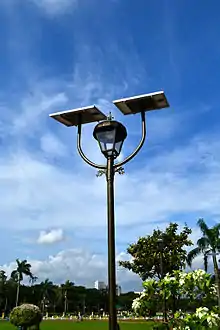 تستخدم أضواء إل أي دي بسبب إضاءتها العالية وطول حياتها. بمتحكم تيار مستمر، تعمل دارة بشكل ألي على إطفاء الضوء نهاراً وتشغيله ليلاً. في بعض الأحيان يوجد موقت زمني لتشغيل الضوء في وقت معين ألياً سواء إطفاء أو تشغيل.[13]