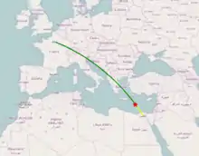 | بداية الرحلة | مطار شارل دي غول الدولي، باريس، فرنسا |