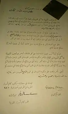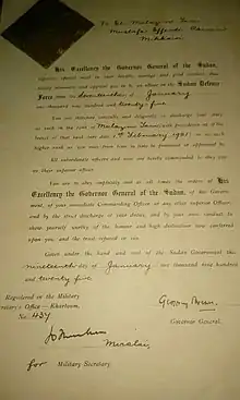 و عند وصوله الخرطوم اجتمع به قادة الجيش الإنجليزي هو و عدد من الضباط والجنود السودانيين