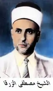 مصطفى أحمد الزرقاء (1904- 3 يوليو 1999) عالم سوري من أبرز علماء الفقه في العصر الحديث، أطل على العالم الإسلامي في وقت كان يئن تحت نير الاستعمار الإنجليزي والفرنسي الذي أدى إلى تراجع البلاد وانهيارها سياسيا واقتصاديا واجتماعيا وفكريا.[1]وقام العلامة في التوجيه والإصلاح وظهر أثر الفكر الغربي في الفكر والثقافة الإسلامية، فظهر الفكر الاستشراقي والتبشيري. في هذه الأوضاع ظهر الشيخ مصطفى الزرقا مصلحاً ذا أثر عظيم في إصلاح المجتمع ونهضته.