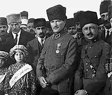 مصطفى كمال أتاتورك (بالتركية: Gazi Mustafa Kemal Atatürk) (19 مايو 1881 - 10 نوفمبر 1938) رئيس الجمهورية التركية (1923 – 1938). هو مؤسسَ تركيا الحديثة. قائد الحركة التركية الوطنية التي حدثت في أعقاب الحرب العالمية الأولى، الذي أوقع الهزيمة في جيش اليونانيين في الحرب التركية اليونانية عام 1922، وبعد انسحاب قوات الحلفاء من الأراضي التركية جعل عاصمته مدينة أنقرة، وأسس جمهورية تركيا الحديثة، فألغى الخلافة الإسلامية وأعلن علمانية الدولة. كان علمانيًا وقوميًا، وأصبحت سياساته ونظرياته معروفة باسم الكمالية.