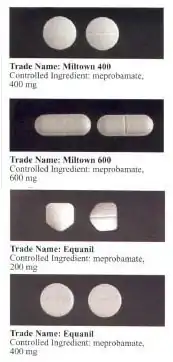 تم تسويق meprobamate الميبروبامات (ميلتاون ، إكوانيل) / (Miltown, Equanil) كبديل أكثر أمانًا لمضادات القلق الباربيتورات barbiturate anxiolytics، وكان يستخدم بشكل شائع لتخفيف القلق في أواخر الخمسينيات والستينيات. مثل الباربيتورات، الجرعات العلاجية تنتج التخدير والجرعات الزائدة الكبيرة قد تكون قاتلة. في الولايات المتحدة، تم استبدال الميبروبامات عمومًا بالبنزوديازيبينات بينما يتم الآن سحب العقار في العديد من الدول الأوروبية وكندا. يحتوي carisoprodol المرخي للعضلات على تأثيرات مضادة للقلق عن طريق التمثيل الغذائي للميبروبامات. تم العثور على العديد من الكربامات الأخرى carbamates التي تشترك في هذه التأثيرات، مثل tybamate و lorbamate.