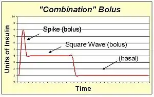 هي مزيج من بلعة قياسية مع موجة مربعة ممتدة. يوفر هذا الشكل جرعة كبيرة من الأنسولين في المقدمة، ثم يمتد أيضًا ذيل عمل الأنسولين. البلعة المختلطة مناسبة للوجبات عالية الكربوهيدرات عالية الدهون مثل البيتزا والمعكرونة مع صلصة الكريمة الثقيلة وكعكة الشوكولاتة. |