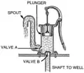 وفيها يكون شوط المكبس لأعلى يتم سحب المياه بواسطة الصمام إلى داخل الاسطوانة، بينما في شوط المكبس لأسفل يتم تصريف المياه من خلال صمام خارج إلى خارج الاسطوانة عبر أنبوب.