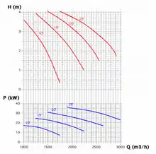 تزداد أيضاً القدرة المستهلكة والارتفاع الهيدروليكي بزيادةزاوية ميل الريشة، وبالتالي يسمح للمضخة بالتكيف حسب شروط النظام لاعطاء أفضل كفاءة.