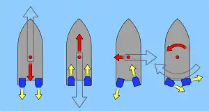 ترفع المضخة ضغط المياه و تدفعها للخلف من خلال فوهة تحول الضغط إلى طاقة حركة ثم توجه المياه إلى الخارج بسرعة عالية لتولد قوة دفع للسفينة في الاتجاه المعاكس, وأحيانا تستخدم ممرات لعكس اتجاه المياه لتخرج في نفس اتجاه حركة السفينة عند الرغبة في تبطئة السفينة أو إيقافها.
