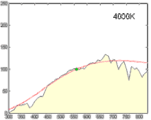 قيس توزيع القدرة الطيفية لضوء النهار في أماكن مختلفة (بود من مجلس البحث الوطني في كندا في أوتاوا، وكونديت وغروم من شركة إيستمان كوداك في روتشيستير، في نيويورك[5]، وهندرسون وهودكيس من شركة ثورن إلكتريكال إندستريز في إنفيلد في شمالي مدينة لندن[6][7].) من 330 إلى 700 نانومتر لحوالي 662 عينة. قام هؤلاء بتحلل العينات ووجدوا أن الإحداثيات اللونية (x,y) مرتبطة بالعلاقة: