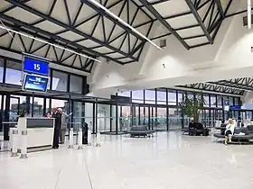 تشمل أجنحة المحطة المحلية علاوة على البهو الرئيسي، منطقة للتسجيل مزودة بـ20 جهازا حديثا، منطقة تجارية تضم 12 محلا تجاريا، قاعة للركوب بـ8 منافذ تضم أيضا قاعة للانتظار وأخرى للصلاة، فضاء لإستقبال الأمتعة عبر ثلاث أفرشة متحركة وقاعة خاصة بالمسافرين على الدرجة الأولى.