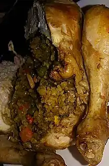 - حمام محشي بالرز واللحمة المفرومة أو بالفريكة.