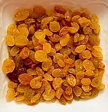 - الزبيب وهو العنب المجفف، ويضاف للكثير من المأكولات وخاصة الحلويات.