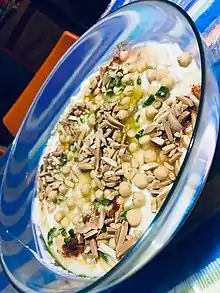- سلطة الخيار باللبن يرش عليها النعنع الناشف.
