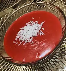 مهلبية مصنوعة من الفراولة. - دجاج محشي بالرز واللحمة المفرومة أو بالفريكة.