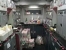المطابخ المدمجة على الطائرات التجارية تحتوي على المعدات لخدمة وتقديم الطعام والشراب وأيضاً تحتوي على مقاعد القفز المخصصة لمضيفي الطيران، ومخازن معدات السلامة، وأيضاً اي شئ اخر قد يحتاجوه مضيفي الطيران خلال الرحلة.
