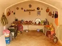 هذه الكهوف "والتي تستخدم كمنازل" تتكون من فناء واسع وكهوف صخرية تستخدم كغرف للنوم أو مكان لتخزين الحبوب بالإضافة إلى الممرات التي تتجمع فيها العائلة والتي تشق طريقها بعمق في الصخور اللينة وتصل فيما بينها بممرات.