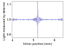 - دقة الطول الموجي أو ميزة كون. يتم معايرة مقياس الطول الموجي بواسطة حزمة ليزر ذات طول موجي معروف يمر عبر مقياس التداخل. هذا أكثر استقرارًا ودقة مما هو عليه في الأدوات المشتتة حيث يعتمد المقياس على الحركة الميكانيكية لحواجز شبكية الحيود. في الممارسة العملية، تكون الدقة محدودة بسبب تباعد الحزمة في مقياس التداخل الذي يعتمد على الدقة.