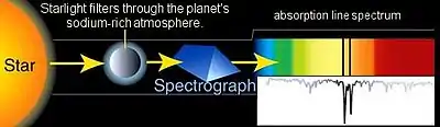 ينشأ طيف الامتصاص لعنصر عندما يمر شعاع ضوء أبيض خلال ذلك العنصر أو بخار العنصر فينتج طيف به خطوط سوداء عند ترددات محددة ومميزة للعنصر.[1][2][3] وطيف الامتصاص هو عكس طيف الإصدار الذري. ينشأ الطيف عموما عندما تثار ذرات عنصر ما بفعل الحرارة مثلا، مما يجعل إلكترونات الذرة تترك مداراتها المنخفضة ذات المستوي المنخفض وتنتقل إلى مستوي طاقة أعلى. لكن الإلكترون لا يستطيع أن يبقى طويلا في هذه الحالة المثارة، فسرعان ما يقفز من المدار العالي الطاقة إلى مدار منخفض الطاقة ويصحب ذلك أن الإلكترون يصدر فارق طاقتي المدارالعالي والمدار المنخفض على هيئة شعاع ضوء ذي تردد محدد (فوتون). وبحسب قفزة الإلكترون من المدار الرابع مثلا إلى المدار الثاني في الذرة، أو من المدار الثالث إلى المدار الثاني فكل قفزة من تلك القفزات تتميز بشعاع ضوء ذي تردد محدد. وتشكل مجموع تلك الإشعاعات والتي تظهر في الطيف على هيئة خطوط، وهي تعدّ بصمة مميزة يمكن بها معرفة العنصر المصدر لها، إذ أن لكل عنصر طيفه المميز وبالتالى بصمته المميزة. وفي حالة طيف الامتصاص، فعندما ندع شعاع ضوء أبيض يتخلل بخار عنصر، يحدث أن ذرات العنصر تمتص بصفة مميزة تلك الترددات المميزة لها، ويظهر الطيف الناتج فاقدا لخطوط تلك الترددات، فتبدوا كخطوط سوداء. ومن هذه يمكننا التعرف على العنصر المتسبب في هذا الامتصاص.