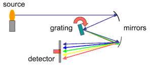يكون المنبع ضوئي عادة من مصباح زينون (وذلك للمجال المرئي)، أو من مصباح متوهج هالوجيني (وذلك للمجال القريب من مجال تحت الأحمر)، أو من الليزر.