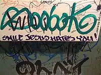 عميلة التخريب أو تشويه الرموز أو الممتلكات المسيحية هو أحد أشكال التعبير عن المشاعر المعادية للمسيحية. إذا يعتبر تشويه أو تخريب من ممتلكات أو رموز مسيحية مقدسة، مثل الكتاب المقدس، والصليب، أو صورة يسوع المسيح أو قديس مسيحي، حالة من التدنيس في نظر المسيحيين. قد يكون هذا التدمير غير القانوني أيضًا إذا كان ينتهك حقوق الملكية أو الكراهية جريمة. وغالبًا ما يعتبر الحرق العمد الموجهة إلى أماكن الاجتماعات أو الكنائس المسيحية جريمة كراهية.[1] ومع ذلك، يمكن أيضا أن تستهدف الكنائس لأسباب لا علاقة لها المشاعر المعادية للمسيحية، وخاصًة بسبب العنصرية (ضد المصلين).[2]