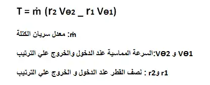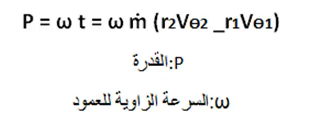 في الضواغط و المضخات يحدث تغير للسرعة المماسية للمائع بين نقطة الدخول و الخروج.ينشأ عن هذا التغير تولد عزم دوران يساوي معدل التغير في كمية الحركة الزاوية ويتم التعبير عنه بالمعادلة الآتية: