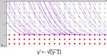 حقل الاتجاه: نستطيع تمثيل ميل كل حل خاص على المحور بواسطة اسهم -لا يوجد معنى لطول السهم- ، بحيث ان اختيار شرط بدائي يعطينا حل واحد هو دالة.