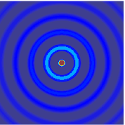 يهتز مصدر نقطي بتردد معين f و طور موجة = 0 عند الزمن t = 0 حيث المسافة بين قمتين 2a (طول موجة). وتنتشر من تلك النقطة موجة كروية . سيتغير طور الوجة المنتشرة بالقيمة kr حيث r هي المسافة المقطوعة بعيدا عن المصدر . ويقل مطال الموجة طبقا لـ 1/r حيث أن الطاقة ستنخفض طبقا لـعلاقة r−2.