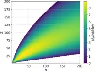 uu Kerne نواة في عدد أحادي من البروتونات وعدد أحادي من النيوترونات. ومجموع تلك الأجزاء يعطينا طاقة الارتباط . ولا تصلح المعادلة للتطبيق على أنوية الذرات الصغيرة التي تحوي عددا صغيرا من النوكليونات، والمعادلة تصف الأنوية الكبيرة بدقة مقبولة . كما أنها لا تستطيع تفسير الأعداد السحرية ، فهذه يفسرها نموذج الأغلفة الطبقية للنواة .