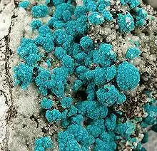 - أوريكالسيت Zn,Cu)5(CO3)2(OH)6)
