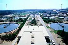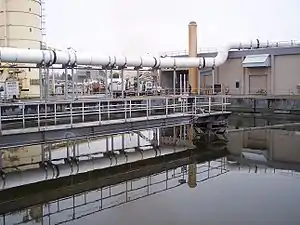 يُستبدل بمصطلح «منشأة معالجة مياه الصرف الصحي» (أو «أعمال معالجة مياه الصرف الصحي» في بعض البلدان) في الوقت الحاضر، مصطلح منشأة معالجة المياه العادمة أو محطة معالجة المياه العادمة.[1]