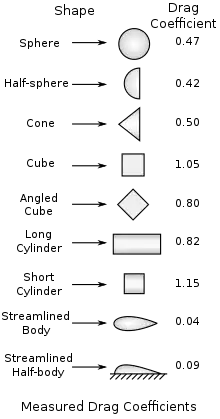 يستخدم معامل السحب في حساب معادلة السحب حيث يعني معامل سحب صغير مقاومة للهواء أقل أو مقاومة للماء أو المائع أقل . وينطبق معامل السحب على مساحة معينة لجسم . [1] تعطي القائمة المجاورة معامل السحب لأشكال أجسام مختلفة .