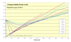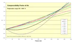 - المعامل Z للهواء عند الضغوط بين 1-500 ضغط جوي