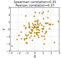 معامل سبيرمان للارتباط (بالإنجليزية: Spearman's correlation coefficient) ويعرف أيضا بمعامل ارتباط سبيرمان حسب الرتب، في الإحصاء، هو قياس لمستوى الارتباط الإحصائي بين متغيرين، انطلاقا من رتب البيانات الملاحظة.[1] بالتالي، يعتبر تقنية إحصائية غير معلمية[2]، مقارنة بمعامل الارتباط لبيرسون.