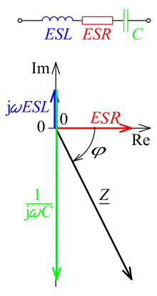 أما في حالة وجود مكثف ذو سعة C فيكون له مفاعلة سالبة: