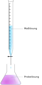 نضع كمية مقاسة بدقة من المحلول المراد معايرته في قارورة وبضع نقط من كاشف لوني. نضع القارورة تحت السحاحة المحتوية على المحلول المعاير. ونبدأ بإضافة كميات قليلة من السحاحة إلى القارورة حتى يتغير لون الكاشف، مشيرا إلى اكتمال المعايرة