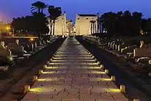 معبد الأقصر معبد كبير من المعابد المصرية القديمة المعقدة يقع على الضفة الشرقية لنهر النيل في مدينة الأقصر اليوم المعروفة باسم (طيبة القديمة). تأسس سنة 1400 قبل الميلاد.[1] شُيد معبد الأقصر لعبادة آمون رع وزوجته موت وابنهما خونسو؛ وهي الآرباب التي يطلق عليها أيضا لقب الثالوث الطيبي (ثالوث طيبة). تم تشييد معبد الأقصر في عهد ملوك الأسرة الثامنة عشر، والأسرة التاسعة عشرة. وأهم الأبنية القائمة بالمعبد هي تلك التي شيدها الملكان أمنحوتب الثالث (1397-1360 ق.م.) ورمسيس الثاني (1290-1223 ق.م.) (الذي أضاف إلى المعبد الفناء المفتوح والصرح والمسلتين). كما أقام الملك تحتمس الثالث (1490-1436 ق.م.) مقاصير لزوار ثالوث طيبة المقدس، كما قام توت عنخ آمون (1348-1337 ق.م.) باستكمال نقوش جدرانه. وقد دمرت المقصورة الثلاثية التي كانت قد شيدت من قبل في عهد الملكة حتشبسوت والملك تحتمس الثالث (من الأسرة الثامنة عشرة)؛ ثم أعيد بناؤها في عهد الملك رمسيس الثاني. سمي المعبد أيضاً "إيبت رسيت" (وتعني الحرم الجنوبي أو المكان الخاص بآمون رع).[2] وهو من أحسن المعابد المصرية حفظاً وأجملها بناء، وفيه يتجلى تخطيط المعبد المصري أوضح ما يكون.[3]