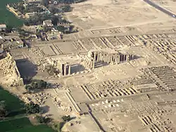 ![]() منظر جوي لمعبد الرامسيوم بطيبة، يُظهر الصرح والمباني الثانوية | |