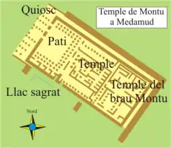 كان موقع معبد المملكة القديمة، مكرس لمونتو، محاط بسور وله بستان مقدس. كان لديه نظام النفق، التلال والغرف.[9]