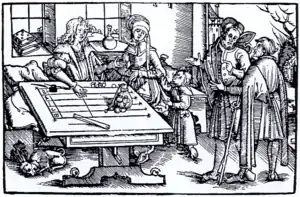 كانت الطريقة التقليدية للحساب في روما القديمة، كما كان الحال في اليونان، هي عن طريق تحريك العدادات على طاولة ناعمة، غالبا ما كان يستخدم الحصى كعدادات. في وقت لاحق، في أوروبا أثناء العصور الوسطى، تمت صياغة الكسور، الخطوط المحددة التي تشير إلى وحدات، الخموس، العشرات كما هو الحال في نظام الأرقام الرومانية.[29] استمر هذا النظام حتى أواخر الإمبراطورية الرومانية ثم بدأ يختفي تدريجيا ماعدا الفترة التي أدخل البابا سيلفستر الثاني بعض التعديلات على المعداد في القرن الحادي عشر،[30][31] حيث أصبح هذا المعداد يستخدم الحبوب على الأسلاك ليكون أسرع وأسهل في الاستخدام.[32]