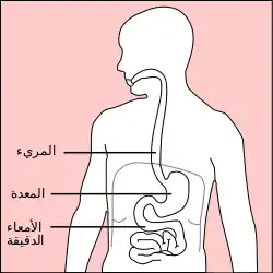 ![]() موقع المعدة في جسم الإنسان موقع المعدة في جسم الإنسان | |