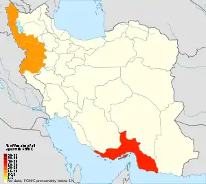 وفي إقليم كردستان بالعراق صرحت منظمة اليونيسف عام 2011 أن واحدة من كل فتاتين كرديتين من سن 15 إلى 24 سنة بمحافظتي السليمانية وأربيل تعرضت للختان في سن أصغر.[28] [29]