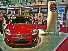 عرض سيارة جديدة من طراز «فيات» بمعرض في القاهرة.