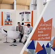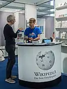 جناح مُؤسَّسَة وِيكِيبِيدِيَا مُشارِكاً فِي إِحدَى معارِض الكِتاب.