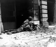 جنود الحلفاء يهاجمون قوات الدفاع الألمانية في شوارع آخن في 15 أكتوبر 1944.
