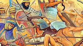 في 351 قبل الميلاد، استعد أردشير الثالث الأخميني لشن غزو آخر لمصر. وفي نفس الوقت اندلع تمرد في آسيا الصغرى، والذي، بدعم من ثيفا، هدد بأن يصبح جديًا.[9] قام أردشير الثالث بالرفع بجيش كبير، وسار إلى مصر، واشتبك مع نختنبو الثاني. وبعد عام من قتال الفرعون المصري، ألحق نختنبو هزيمة ساحقة بالفرس بدعم من المرتزقة بقيادة الجنرالات اليونانيين ديوفانتوس ولاميوس.[10] اضطر أردشير الثالث إلى التراجع وتأجيل خططه لاستعادة مصر.