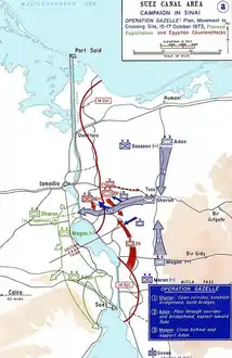 بعد ذلك قاد آدان فرقته وراء الجيش الثالث المصري وقطع خطوط الإمداد[8] عن عشرين ألف جندي مصري كانوا محاصرين في شبه جزيرة سيناء.