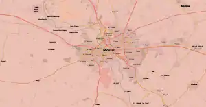 معركة الموصل أو كما أسماها رئيس الوزراء العراقي حيدر العبادي "قادمون يا نينوى"[36] هو هجوم مشترك لقوات الأمن العراقية مع الحشد الشعبي، وقوات البيشمركة في كردستان العراق، وقوات التحالف لمحاربة الإرهاب لاستعادة السيطرة على مدينة الموصل من تنظيم الدولة الإسلامية والتي تعتبر عاصمته.[37][38][39] بدأت الحرب البرية في 16 أكتوبر، 2016.[40][41][42] وقد أعلن عن بداية العملية الحربية رئيس الوزراء العراقي حيدر العبادي في 17 أكتوبر 2016 الموافق 16 محرم 1438 هـ، وكانت العملية تهدف إلى إنهاء وجود تنظيم الدولة الإسلامية في المدينة وإعادة المدينة إلى الإدارة العراقية.[43]