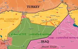 |CitationClass=تم تجاهله (مساعدة) - "Fighting continues between YPG and al Nusra Front". PUK Media. 9 September 2013. مؤرشف من الأصل في 13 فبراير 2018. اطلع عليه بتاريخ 06 أبريل 2017. الوسيط