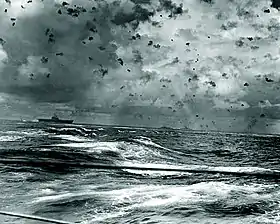 2 حاملة طائرات (أضرار شديدة)، 1 طراد (أضرار شديدة)، 99 طائرة 400–500 قتيل[5] | ||||||