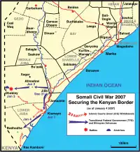 |CitationClass=تم تجاهله (مساعدة) - "Somalia: Joint forces advance to Kismayo city, Islamist base". SomaliNet. 30 December 2006. مؤرشف من الأصل في 09 أغسطس 2011. اطلع عليه بتاريخ 01 يناير 2007. الوسيط