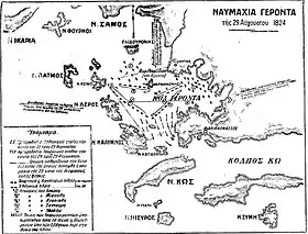معركة جيرونتاس (باليونانية: Ναυμαχία του Γέροντα) هي معركة بحرية بين الأسطول العثماني والاسطول المصري والاسطول الليبي من جانب والاسطول اليوناني من جانب اخر وتعد المعركة من أكبر المعارك خلال حرب الإستقلال اليونانية والتي امتدت خلال الفترة من عام 1821 واستمرت حتى عام 1829 ووقعت المعركة يوم 29 أغسطس 1824 وذلك في خليج جيرونتاس الواقع ببحر ايجه وانتهت المعركة بانتصار الأسطول اليوناني.[1] [2] [3] [4][5][6]