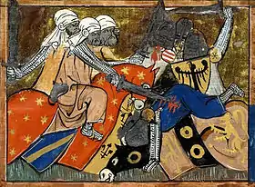 ![]() رسم لمعركة ساحة الدم، الجيش الإسلامي على (اليسار) الفرنجة على (اليمين) | |||||||